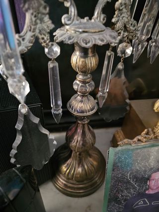 Candelabro antiguo 2 luces S. XIX con cristales.
