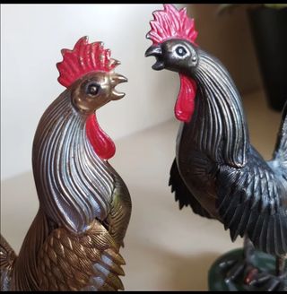 Gallos antiguos metal - Decoración