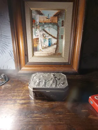 Varios objetos antiguos...Joyero de 1790o 1800, bandeja años 20 de Chicago, bascula de juguete,guarda plumillas, monedas o abanico de plata Dígame que le interesa y acordaremos precio A partir de 20 euros Las fotografías son parte de la descripcion