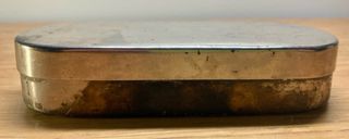 Caja metálica antigua, ideal para coleccionistas o como objeto decorativo. 13,5 x 5 x 3 cm - Diseño ovalado. - Material metálico plateado.