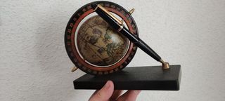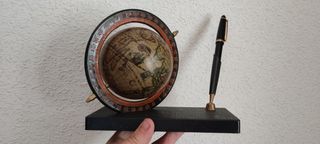 Juego de escritorio compuesto por bolígrafo y globo terraqueo antiguo. Viene en su caja original. Ideal para regalo. Objeto de coleccionista. Medidas 17x14,5 cm Mira mi perfil, hay muchas cosas interesantes a buen precio Consúltame el tiempo de envío. Hay veces que por mi trabajo no lo puedo enviar en el plazo que marca la aplicación..