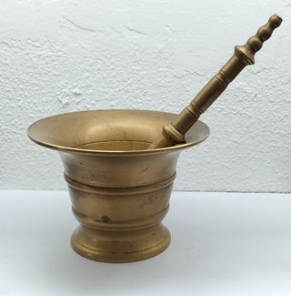 Consigue este histórico Almirez antiguo de bronce macizo! Una pieza de colección con más de 100 años de antigüedad. Está en excelentes condiciones, usado como objeto de colección. Además tiene unos originales grabados y mosaicos que lo hacen único. Si estás interesado puedo proporcionar medidas. Cualquier duda, pregunta sin compromiso!!