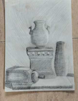 Dibujo a lápiz de escolar, con anotaciones manuscritas. Una auténtica maravilla - Boceto de bodegón con objetos. - Incluye notas sobre perspectiva y volumen. Las fotografías son parte de la descripción del producto Fase,Antiguo,antigua,bargueño,buro,secreter,siglo,tallado,tallada,torneada,nogal,medieval,monedas,mueble,cobre,bronce,victoriano,época,isabelino,manuscrito,latín,romano,años,vintage,antigüedad,bonito,único,salón,decoración,armario,exclusivo,escritorio,entrada,comedor,entradita,recibidor,estilo,barroco,madera,ard deco,rural,herencia,rococó,plata,oro,cerámica,cuadro,lienzo,oleo,pintura,serigrafía