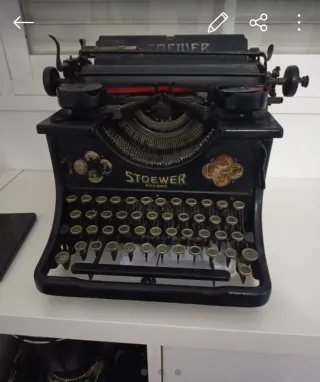 Máquina de escribir antigua marca Stoewer, modelo Record. Un objeto clásico para coleccionistas o decoración. - Diseño vintage en color negro. - Teclado QWERTZ.