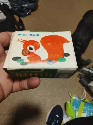 Caja de cartón con diseño de ardilla y piña. Ideal para coleccionistas o como objeto decorativo. - Ilustración de ardilla naranja. - Detalles en color verde y negro. - Texto en la parte inferior.