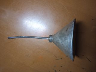 antigua aceitera hojalata sin estrenar nueva ideal para engrasar objetos pequeños o de adorno fabricada por hojalatero se ve su simpleza de cómo trabajaban antes el precio es de 14 euros