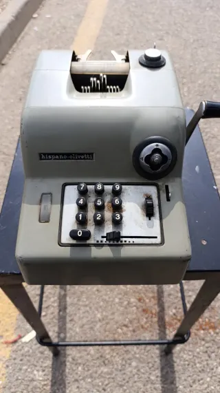 Máquina de calcular mecánica Hispano-Olivetti de época. Un objeto clásico para coleccionistas o para añadir un toque vintage a tu espacio. - Diseño robusto y retro. - Teclado numérico completo. - Palanca de operación lateral.