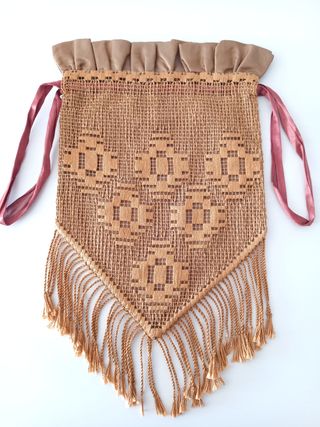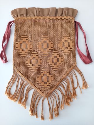 Muy Antigua limosnera de punto de aguja y seda, con fleco. Esta impecable. Mide 35 cm de largo y 20 cm de ancho. Mas en mi perfil. Ropa antigua, objetos antiguos, ropa tradicional, indumentaria antigua, traje regional. Pieza de museo, coleccionista, religión, etnografia, telas antiguas.