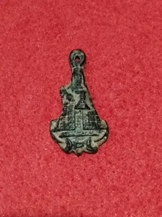 Medalla figurada realizada en bronce, con pátina de antigüedad y desgaste coherente con su uso histórico. La pieza presenta la composición típica de determinadas representaciones de la Virgen de Guadalupe. Prob. 'medalla de peregrino' producida entre los siglos XVII y XVIII. Elaborada mediante molde y destinada a llevarse suspendida del cuello o cosida en la vestimenta Objeto de devoción privada con notable valor histórico, representativo de la religiosidad popular y de los itinerarios de peregrinación Pieza idónea para coleccionismo especializado, estudios de arte sacro, arqueología devocional o museografía religiosa Art sacre