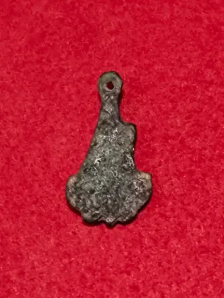 Medalla devocional antigua de plomo, datable entre los siglos XVII–XVIII. Pieza humilde y auténtica, marcada por el paso del tiempo, con una fuerte pátina y desgaste coherente con siglos de uso y devoción popular. Presenta escudo coronado con cruz y una figura religiosa muy erosionada (santo a identificar), testimonio de su antigüedad y de su función protectora. Fundida en molde, con anilla original integrada. No es reproducción moderna. Orig.: territorios de la corona de Aragón. Objeto cargado de historia, ideal para coleccionistas de arte sacro y devoción antigua. --- Art sacre, arte sacro, Aragó, Catalunya, Cataluña, Ramon
