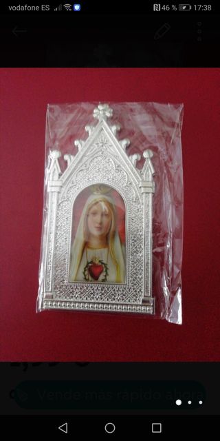 Conjunto de objetos religiosos de la Virgen del Rocío. - Relicario con marco ovalado con figura en relievecon cristal en material plateado tratado para no poner feo y limpiar solo con pali susve.50€ - Medalla ovalada con figura Virgen del Rocío de plata, con marca de plata 925 en anilla cerrada.45€ - Insignia de ojal en plata de la Virgen del Rocío, no es material plateado, es plata, de coleccion.45€ ,,-Entrega en mano 140€