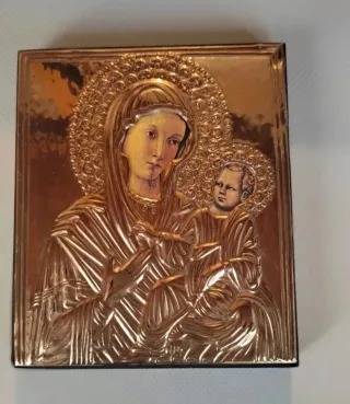 Icono Virgen Iver Niño Jesús Plata Bilaminada