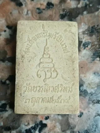 Phra Kruang. Estos objetos son muy valorados en Tailandia no solo como elementos religiosos, sino también como objetos de colección y protección. Se trata de un Phra Somdej, uno de los estilos de amuletos más nobles y reconocidos. La forma rectangular con la figura de Buda sentado en un trono de varios niveles es la característica clásica. La inscripción en el reverso indica que proviene de Wat Bowonniwet Vihara (วัดบวรนิเวศวิหาร), un templo real de primera clase muy importante en Bangkok, vinculado estrechamente con la monarquía tailandesa. Protección: Brindar seguridad al portador frente a peligros o accidentes. Prosperidad