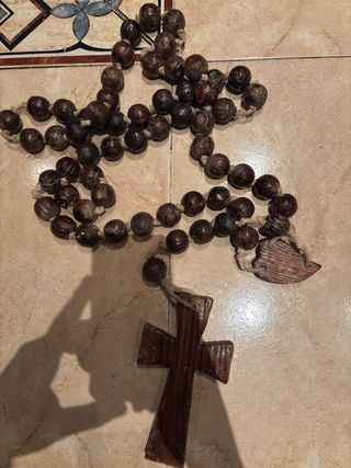 Precioso rosario de madera con un diseño clásico y atemporal. Ideal para coleccionistas o como objeto decorativo. - Elaborado en madera. - Católico, cristiano.