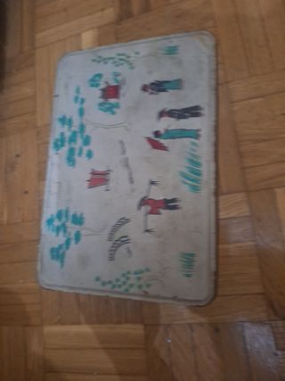 Pequeña caja lacada y pintada a mano. Fabricadaen Rusia en los años 70 y firmada por el autor. Hecha en papel mache, representan escenas del folclore ruso. Técnica tradicional de algunas zonas del país. Muy valoradas. Objetos coleccionables.