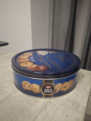 Elegante lata vintage de galletas danesas Royal Dansk. Ideal para coleccionistas, costura o como objeto decorativo. - Conserva su aspecto original. - Perfecta para coleccionistas o amantes del vintage. - Medidas aproximadas: Diámetro 19cm.