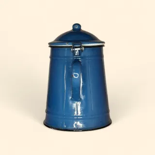 Cafetera antigua de hierro esmaltado en un llamativo color azul. Su diseño clásico la hace un objeto decorativo o de colección. Medida: 18 cm - Material: Hierro esmaltado. - Color: Azul. - Estilo: Vintage.