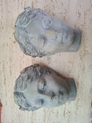Set de dos cabezas decorativas de cerámica con un diseño clásico. - Material: Cerámica. - Acabado: Aspecto envejecido.