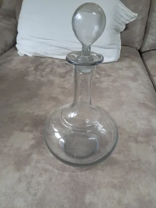 Elegante decantador vintage de vidrio, con tapón. - Material: Vidrio. - Diseño clásico y atemporal. - Ideal para licores o como pieza decorativa.