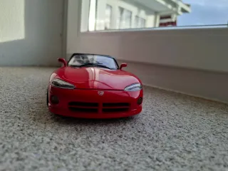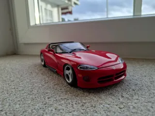 Dodge Viper RT/10 en escala 1/18. Fabricante Bburago. Le falta una visera parasol y tiene un arañazo en un puerta. No tengo la caja original.