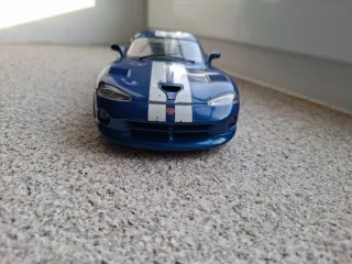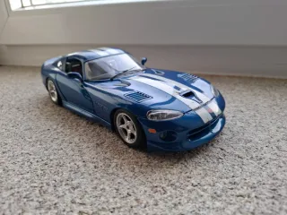 Dodge Viper GTS en escala 1/18. Fabricante Bburago. Tiene las pegatinas de las franjas blancas algo dañadas. No tengo la caja original.