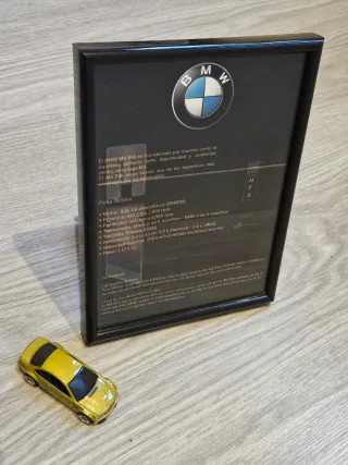Vendo cuadro del famoso e icónico Bmw M3 E46 y sus especificaciónes. El coche va anclado al cuadro y se puede extraer. Las letras de la ficha técnica y especificaciónes van en el mismo color que el coche. Hot Wheels Acepto juegos de Game boy, advance, Nintendo N64 y PS2 de mi interés.