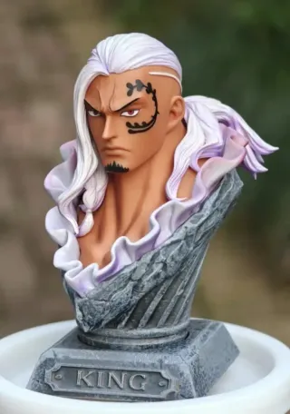 Estatua de King (V2) de LX STUDIO, personaje de One Piece. Altura: con base octogonal 47cm ; con suelo rocoso 48.5cm (ambos incluídos) - Material: Resina. - Diseño detallado del personaje. Producto enviado desde España, recién llegado. No se ha abierto ni sacado de la caja marrón.
