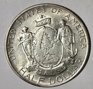 En venta moneda conmemorativa de Estados Unidos: Medio Dólar del Centenario de Maine (1820-1920). Una pieza clásica y elegante para coleccionistas exigentes. Estado: Uncirculated (UNC / Sin circular). Conserva todo su brillo original (lustre satinado). Conservación: Relieves perfectos, sin rastro de desgaste. Campos muy limpios. Material: Plata .900 (Peso: 12,50 gramos). Diseño: Obra de Anthony de Francisci (famoso por el diseño del Dólar Peace). Solo se acuñaron 50.012 unidades, lo que la hace mucho más difícil de encontrar que las monedas comunes de circulación. 59030