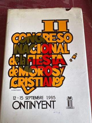 Cartel del II Congreso Nacional de la Fiesta de Moros y Cristianos celebrado en Ontinyent. - Fecha: 12-15 Septiembre 1985. - Lugar: Ontinyent. - Diseño gráfico de M. Vicente Quinto.