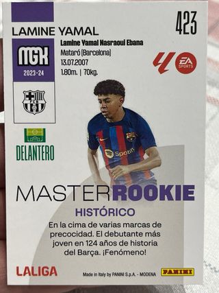 Cromo de Lamine Yamal, Master Rookie de LaLiga. - Temporada 2023-2024. - Esta perfecta y guardada en funda de plástico para conservarla perfecta.
