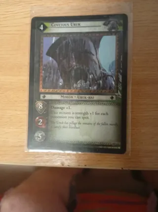 Carta del juego de cartas coleccionables El Señor de los Anillos (LOTR TCG). Son 3 copias. - Modelo: Covetous Uruk. - Código: 0P121. - Cantidad: 3 unidades.