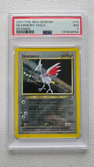 Carta Pokémon Skarmory, edición Neo Genesis, con acabado holográfico. Certificada por PSA con una puntuación 7. Escucho ofertas y cambios.