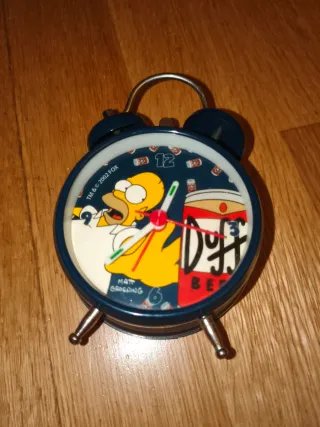 Reloj despertador con diseño de Homer Simpson y cerveza Duff. - Personaje: Homer Simpson. - Diseño: Cerveza Duff. - Licencia: Matt Groening & © 2002 FOX. - Pequeño golpe en el lateral por la parte de atrás. Apenas se nota (ver foto) - Funciona con una pila AA