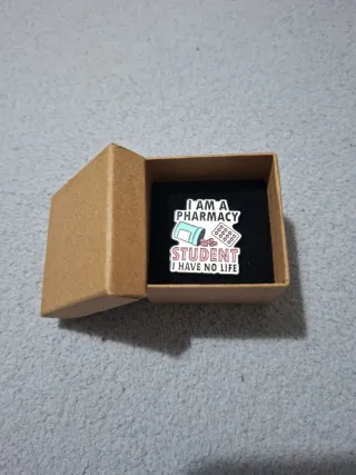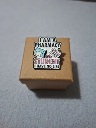 Simpático Pin metálico esmaltado para estudiantes de Farmacia con un toque de humor. - Diseño: I AM A PHARMACY STUDENT I HAVE NO LIFE - Incluye un frasco de pastillas y un bote de medicamentos en el diseño. - Viene presentado en una pequeña caja de cartón, ideal para conservarlo e incluso dar un bonito regalo En caso de hacer envío podemos ajustar un poco el precio 😉