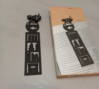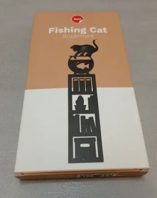 Original marcapáginas con diseño de gato. En su caja