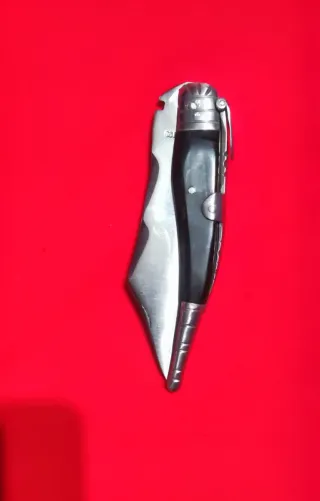 Navaja de colección Bustos, Santa Cruz de Mudela,modelo Jerezana, de cuerno, palanquilla reliada... 9'5cm de hoja