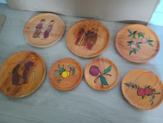 Platos de madera grabados (set de 7)