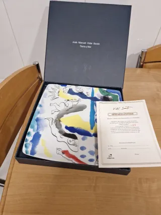 Plato de cerámica de diseño exclusivo de Vidal Souto, titulado Tierra y Mar. - Pieza de colección. - Incluye certificado de autenticidad. - Firmado por el artista.