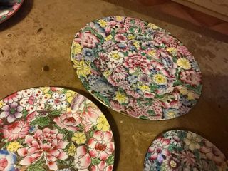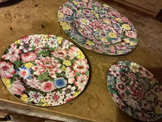 Platos Macao mil flores antiguo 25,-17 15 cm
