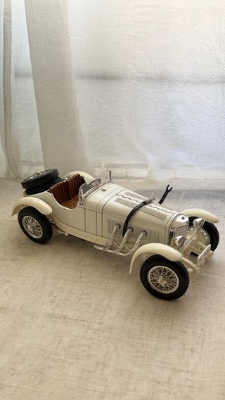 👉🏻 Maqueta a escala del Mercedes-Benz SSKL (Super-Sport-Kurz-Leicht), específicamente el modelo 3002 de Burago en escala 1:18. Características: Color blanco con asientos marrones, ruedas de repuesto traseras y detalles plateados. 👉🏻 Ver fotografías: Falta logotipo de Mercedes en capota y cinto de la capota “dañado”. 👌🏻 Ideal para decorar una estantería, un escritorio con clase o para ampliar tu colección de miniaturas. 💯 Medidas: 25 cms largo/ 9 cms ancho 📦 Se envía totalmente protegido para que llegue bien a su destino Coche clasico retro vintage lámpara lamparita diseño ace space mid century 60s 70s 80s Lighting lamp
