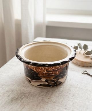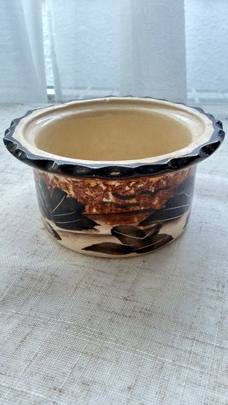 🥣 Cuenco con acabado esmaltado y detalles de hojas pintadas a mano. 👌🏻Es una pieza muy versátil que puedes usar como: • Vaciabolsillos con estilo en el recibidor. • Macetero para suculentas o cactus • Artículo decorativo • Bol para servir (frutos secos, aceitunas...) 💯 Excelente estado tulipa retro vintage lámpara lamparita diseño ace space mid century 60s 70s 80s Lighting lamp aparador colección coleccionismo sobremesa sobretaula lámpara de noche antigua art deco globo opalina Diseño 1980 1970 1960 Sofá Mesa Butaca Sillon Mueble Ocasión Antiguo Antigua Escandinavo cuenco artesanía antigüedad