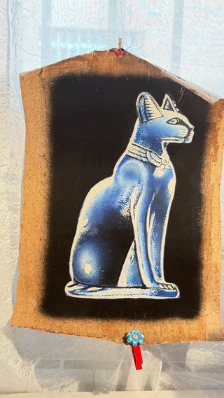 👌🏻 Papiro detallado de Bastet, la diosa egipcia de la protección y el hogar. 👉🏻Material: Papiro natural con bordes irregulares que le dan un carácter rústico y auténtico. 🎨 Impresionante degradado en azul eléctrico y blanco que resalta sobre el fondo negro profundo. 👌🏻Estado: Conservado con mucho cuidado. 🍀 Queda increíble tanto en un marco de madera clara como suspendido con pinzas decorativas para un look más relajado. 📦 Envío protegido: Me aseguro de que el papiro viaje bien resguardado para que llegue intacto a su nuevo hogar. Papiro egipto tulipa retro vintage lámpara lamparita diseño ace space mid century