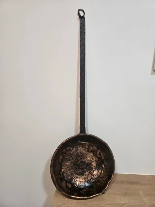 Antigua sartén de cobre 44cmtrs mango y 24 ancho s