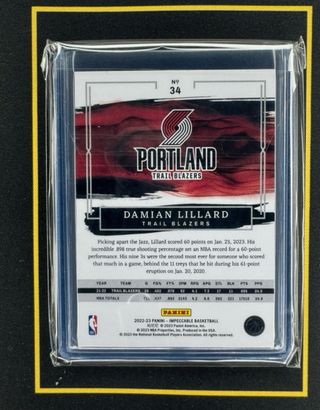 Tarjeta de baloncesto de Damian Lillard de la colección Impeccable 2022-23. - Edición limitada /99. - Muestra al jugador Damian Lillard. - Representa a los Portland Trail Blazers. #nba #basketball #ncaa #euroleague #acb #ligaendesa #jordan #nike #adidas #reebok #mitchellandness #champion #kobe #psa #card #cooper #flagg #auto #patch #jersey