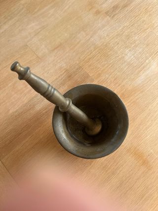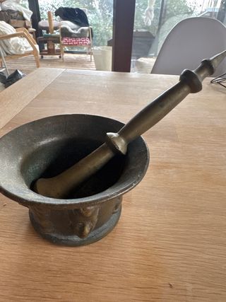 Este mortero de bronce es una pieza clásica y funcional para tu cocina. - Material: Bronce. - Diseño robusto y duradero. - Acabado metálico.