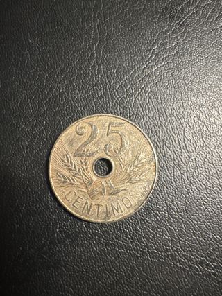 Moneda original de España de 25 céntimos de 1937, acuñada durante la Guerra Civil Española. Material: latón / cobre (no es de plata). Estado: usada, con desgaste por circulación. Pieza histórica para coleccionistas. Se vende tal como se ve en las fotos. Envío: Se enviará protegida en cápsula o funda para asegurar que llegue en perfecto estado.