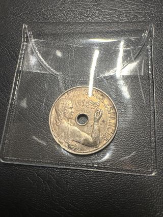 ¡Oportunidad para coleccionistas! Se vende moneda española de 25 céntimos de 1934, perteneciente a la Segunda República Española (1931–1939). Excelente, detalles nítidos y claros, prácticamente sin desgaste, ideal para colecciones. •Material: Bronce / cupro-níquel •Diámetro: ≈ 22–24 mm | Peso: ≈ 5–6 g
