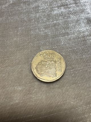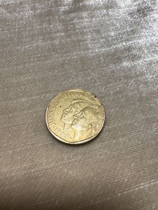 Se vende moneda española de 500 pesetas, año 1988, con los retratos de Juan Carlos I y Sofía. •Denominación: 500 PTAS •Reinado: Juan Carlos I •Material: Bimetálica (centro de cuproníquel, anillo de cobre-níquel) •Diámetro: ≈ 30 mm | Peso: ≈ 12 g