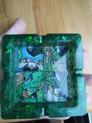 Cenicero decorativo con diseño de Célula de Dragon Ball. - Fabricado en resina de color verde. - Incluye imágenes de Célula en cuatro paneles. - Detalles brillantes en la resina. Hazemos pedidos de cualquier tipo de manga,dragón ball,one piece,Naruto etc