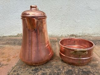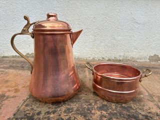 Tetera y cazo cobre latón antiguo